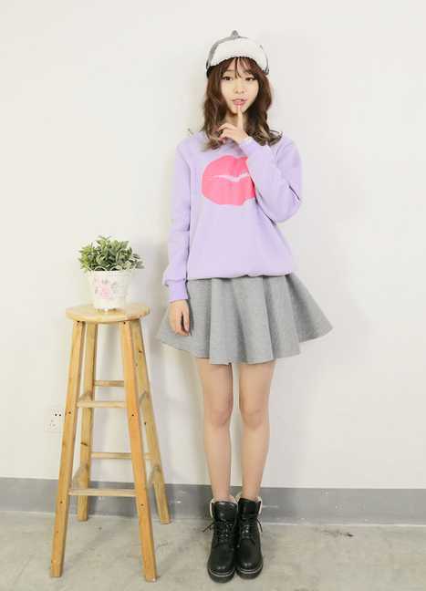大大的嘴唇印花,韩范十足的卫衣,随意搭配裙装或裤装一样的时尚好看。