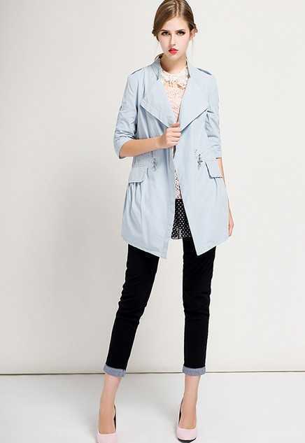 糖果蓝色春季风衣外套,给人眼前一亮的感觉,春季穿出显得格外甜美,独特设计的抽绳设计,完美展现出纤细腰身曲线,让你穿出显瘦又时尚的淑女装扮。