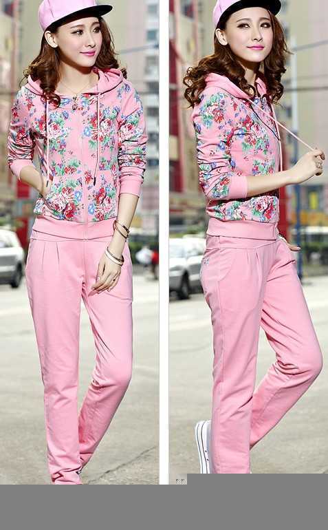 粉嫩的颜色,让人有一种亲切甜美的感觉,复古花朵点缀的运动服套装,是春季衣橱必备的时尚单品,随意穿出淑女时尚范儿。