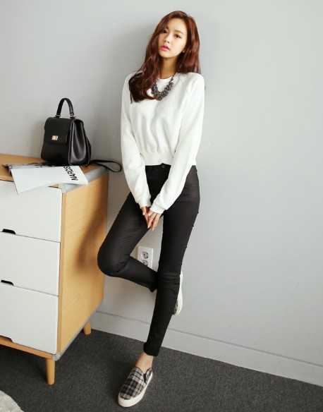 黑色春季休闲裤 清新格调的休闲西裤,修身的设计,完美拉长纤细腿型,搭配白色卫衣,穿出扑鼻清闲的气息,让你2014年春季穿出格外精彩的日常休闲装。