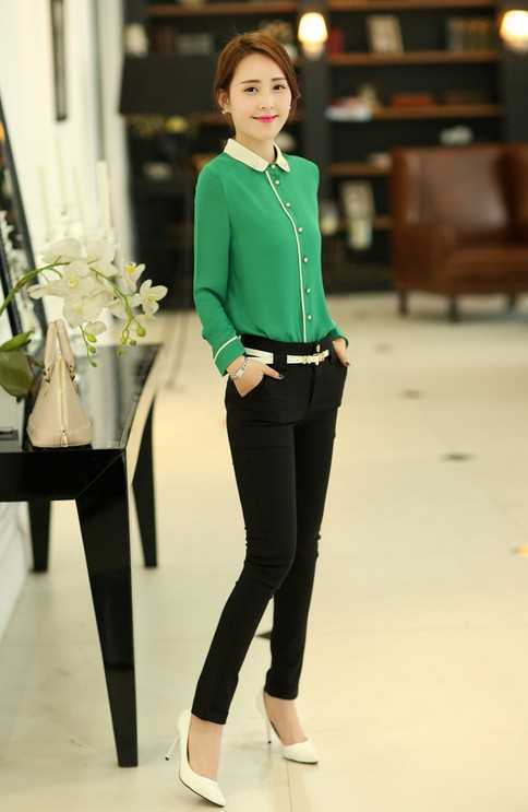 采用撞色拼接裁剪工艺的春装雪纺衬衣,时尚元素十足,呈现清新优雅的格调,穿出春天浪漫的气息!