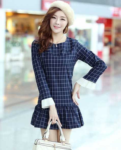 春季拼接款格子连衣裙