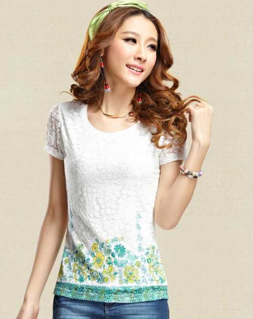 春季新款白色短T恤,蕾丝小碎花的点缀,增添小清新迷人气质,随意搭配牛仔裤很休闲时尚。
