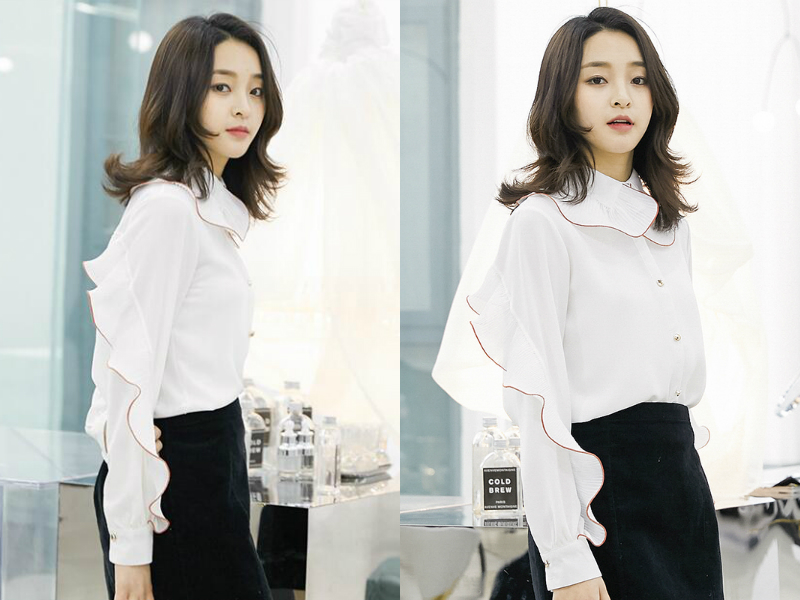 白色的春季服装新款娃娃领雪纺衫很有田园小清新的感觉,复古甜美的娃娃领设计,洋溢青春活力,袖子荷叶边的装饰,修饰纤细的手臂线条,很有飘逸感,极具设计感的雪纺衫充满了时尚质感,很好地诠释了优雅的气质,让女生穿着起来美美哒。