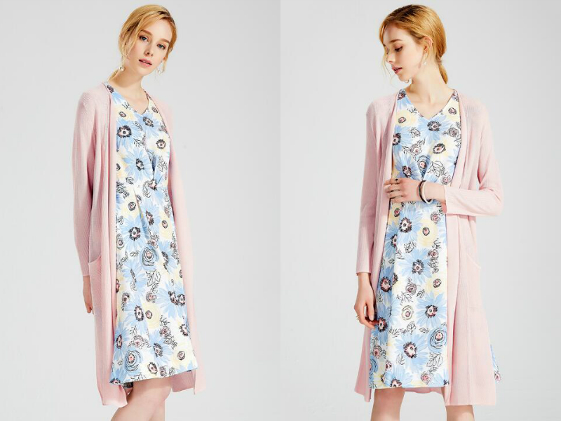 粉色的长款针织开衫穿出了春天的气息,粉粉的纯色少女感十足,特别的显嫩,而且长款的版型轻松就能穿出窈窕身材,拉长了身材比例,内搭一条碎花裙子,就已经很美。