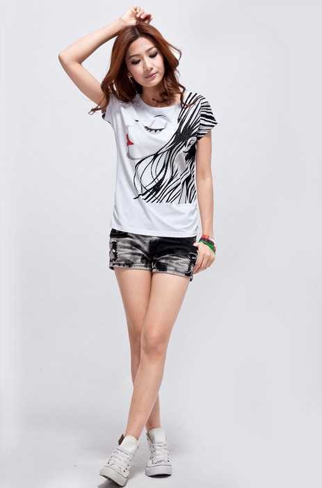 这款T恤要求的是舒适,所以穿上去会很休闲,同时加入了大片图案的流行元素,有过之而无不及的表现了这款女上衣的休闲和大方。