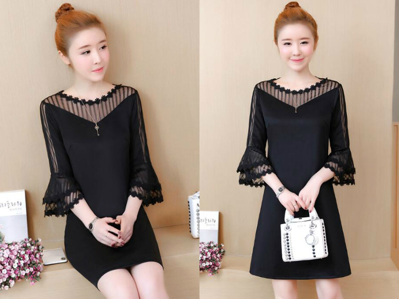 本款连衣裙在胸部以上和双袖融入了蕾丝元素,给人一种朦胧的美,同时也展现出女人的温柔内敛,让MM穿上多了一丝甜美和与众不同。