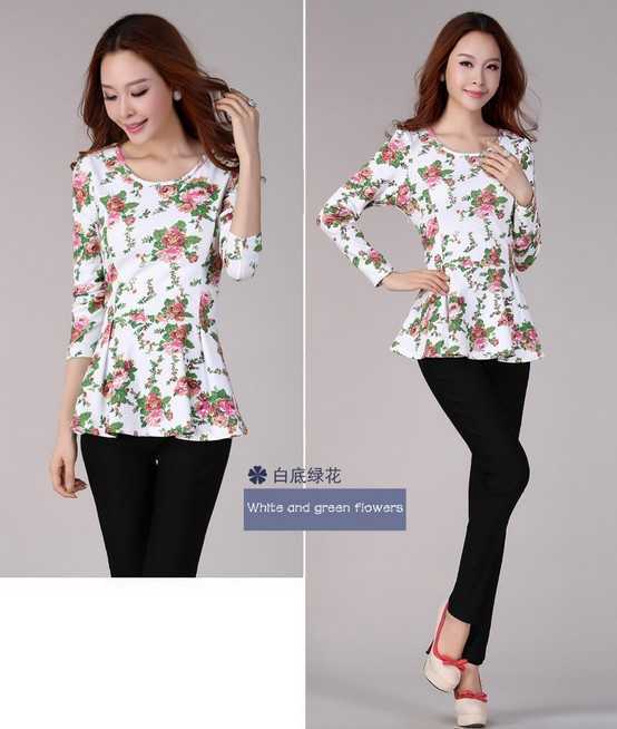 白底绿花的韩版淑女衬衫,非常地温婉与清新,给人愉悦之清新感。搭配显瘦的黑色长裤,一双鱼嘴鞋衬托得非常地唯美和浪漫。