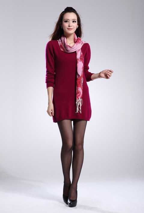 中长款的毛衣,可打底穿。搭配碎花长围巾和黑色打底裤,再将刘海往后盘,整体都是此款毛衣带来的甜美感。