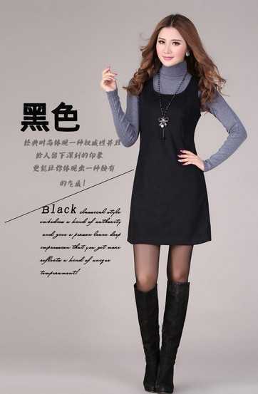都说黑色最显瘦,黑色最气质,果不其然,此款大码背心连衣裙让胖妞儿穿出显瘦的效果来,更有气质。