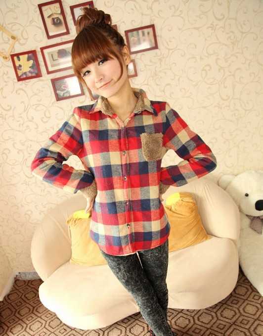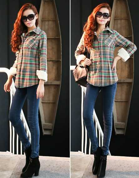 加厚的内里采用的是柔软贴肤的羊羔绒,上身效果非常温暖的一件大码长袖衬衫。与一头侧披下来的长卷发相协调,穿出清新与时尚气息。