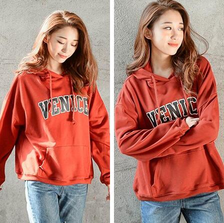 亮眼的红色使这款简约的卫衣变得特别很多,也许是因为妹子身上随意的个性,所以即便是把和自己身材不匹配的大码卫衣穿在身上也不会觉得有哪里不适合,连帽设计休闲感强,加上一个黑色的印花英文单词显得时尚很多。