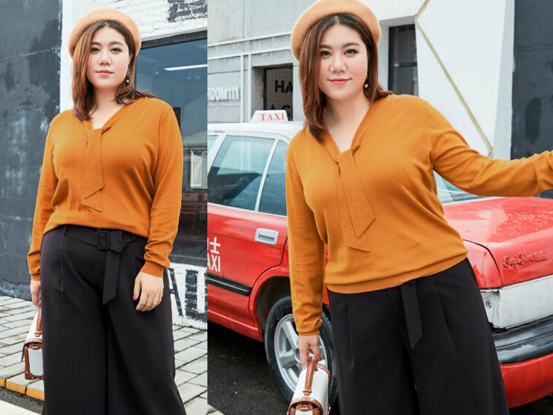 这款大码毛衣选取细腻的毛织料,手感柔软且富有弹性,让你穿上之后贴身舒服。领口的绑带设计展现出女生知性温婉的一面,袖口收拢贴合手腕,防风且保暖,利落裁剪的罗纹下摆,修身又显瘦。