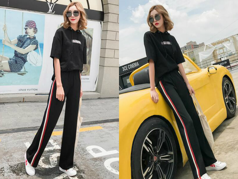 三色侧条纹边边的设计在视觉上形成强烈色彩感,让人想忽略都难,高腰的直筒裤整体黑色彰显时尚百搭风范,料子弹性大垂感适度,裤腿加长更拉长腿型,而且增加了防缩水处理,不必担心洗后变短变形的问题哦!