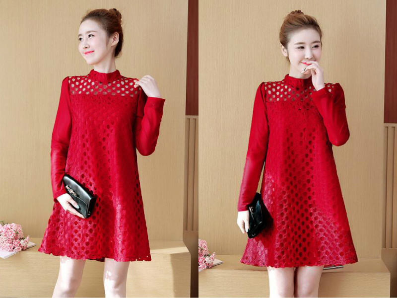 H版型大码女装蕾丝裙,不挑身材显高显瘦,利落流畅的线条,彰显都市女性干练成熟形象,别致领口搭配衣身圆孔设计,层次分明透出性感迷人,衣身上的蕾丝网纱圆孔设计更是流露着不简单的迷人韵味,很是低调的优雅知性美。