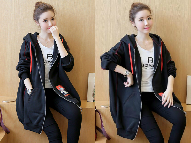 中长款的大码女装卫衣外套真是遮挡肉肉的利器,修身显瘦版型,拉长身材比例,塑造出完美的身材曲线,运动感十足的设计,让胖mm也可以穿得美美的,可爱又少女。