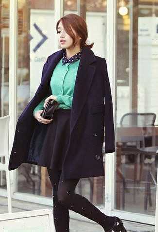 套上复古风衣,嫩绿色针织衫扎进黑色小短裙,觉得优雅大方性感吗,同时嫩绿色针织衫也让整个冬天多出了春天的感觉,男生们看到你,觉得你就是我的春天了。