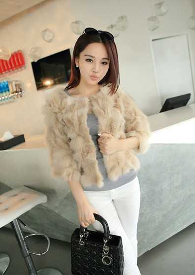 柔顺天然的绒毛材质,自然的绒毛颜色,给人一种棕色与白色混搭视觉效果,增添小知女人味,灰色小背心打底衫,纯白色的长裤,很洒脱帅气,头发慵懒的散披在后背,露出性感迷人的锁骨,尽显小性感女人气质。