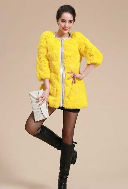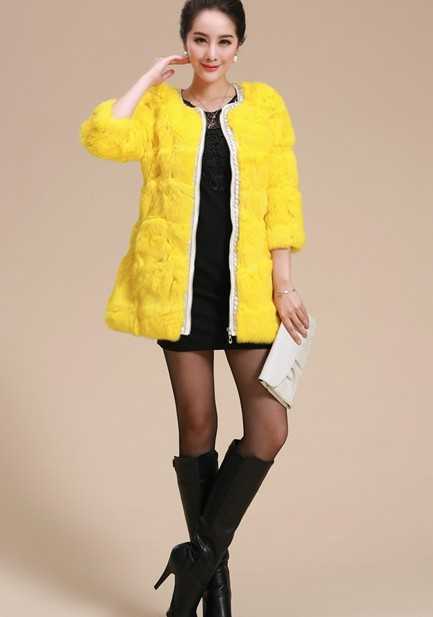 抢眼的糖果色黄色獭兔毛皮草外套,镶上光滑的珍珠点缀着,更显高贵奢华,内搭性感黑色修身长裙,冷色系与抢眼的糖果色相结合,低调又奢华,完美展现华丽高贵的气质,让你华丽蜕变成为成熟稳重的知性女人。