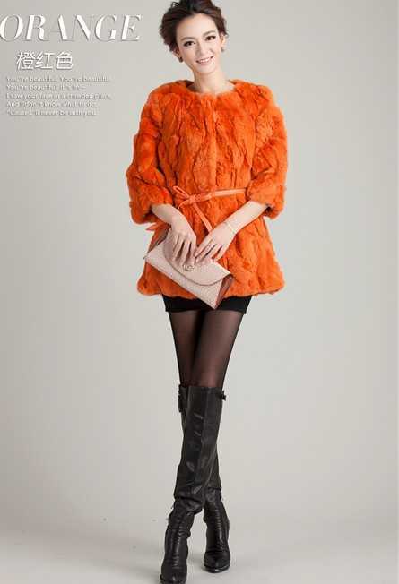 甜美糖果橙色皮草外套