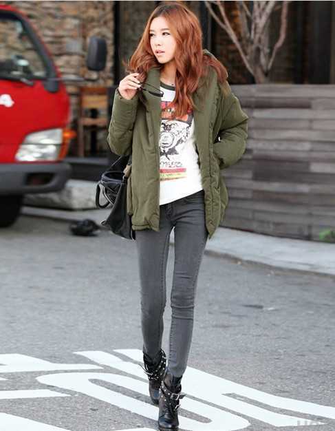 军绿色简约棉衣