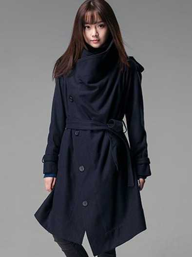 夸张时尚的大翻领设计,随风飘扬着羊绒毛呢外套很潮流独特,简约淡雅的衣身设计,穿起来更显优雅大气风范,深蓝色的色调,呈现出成熟知性女性韵味。