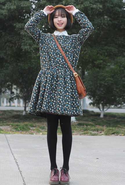 经典的圆领设计,露出纯白色的立体领子,穿出时尚穿法,错综复杂的小碎花印花,加上复古的经典绑带靴子,穿出复古小清新气息,一款时尚又不失温的冬季连衣裙呈现。