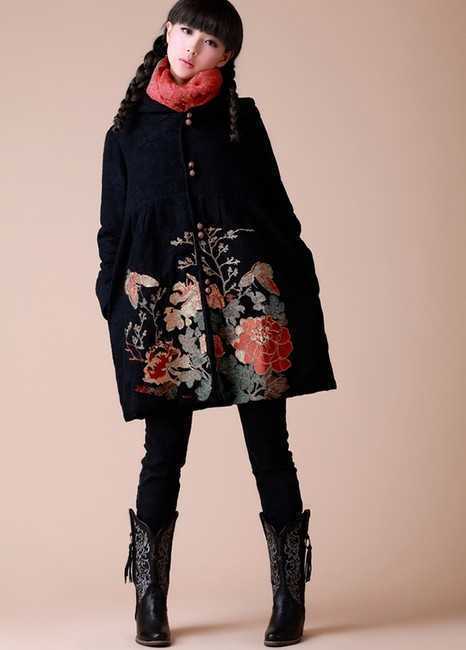 秀美精致的刺绣图案,宽松的下摆,穿起来随性时尚,轻松内搭厚实衣衣,温暖与时尚兼并,民族风大衣是冬日最佳的摩登单品。