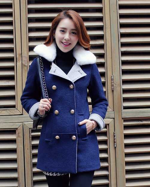 经典的双排扣设计,独特的斜口袋,奢华的绒毛领子,穿出优雅气质型女性魅力 ,灰色与藏蓝色的巧妙拼接,衬托出时尚感十足,随意的穿搭,轻易穿出大牌韩范气质。