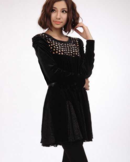 高贵加绒加厚的黑色连衣裙,百搭时尚,独特个性的印花设计,耸肩的肩部,透露出时尚感,让你冬日美丽而不冻人。