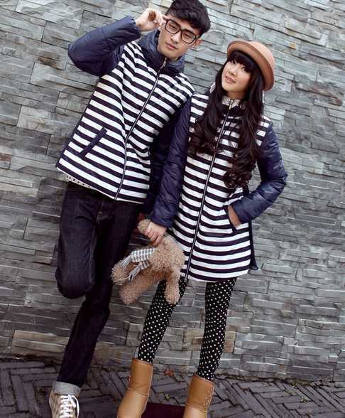 时尚个性的条纹,独特的拼接款,穿出时尚潮流装扮,与你的另一半在冬日美美秀出,轻松甜蜜过冬天。