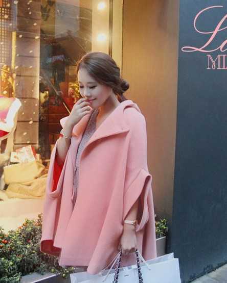 粉嫩色调的冬季斗篷毛呢外套,内搭低调灰色打底衫,散发出优雅迷人气质,轻松穿出优雅时尚冬装。
