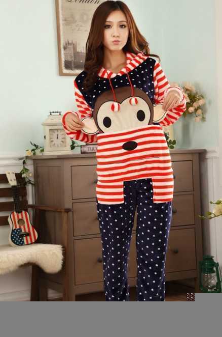 萌萌的小猴子,高品质温暖的法兰绒睡衣,穿出超萌时尚感的居家服,让你在家也能穿出时尚范儿,是今年冬季大热的睡衣款式。