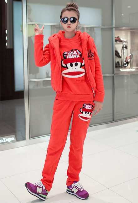 大红韩版大嘴猴卫衣三件套