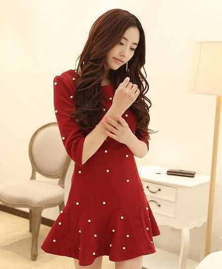 精美的珍珠点缀,高贵又复古,独特的百褶裙摆,修身的款式,凸显出曼妙身姿,穿出时尚复古女性韵味。