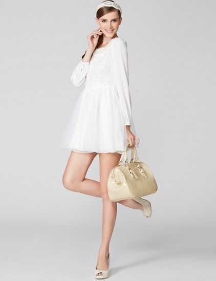甜美感十足的蕾丝套头连衣裙,百褶飘逸的雪纺裙摆,穿出甜美气质公主范,随手拎着贵气包包,尽展高贵名媛范。