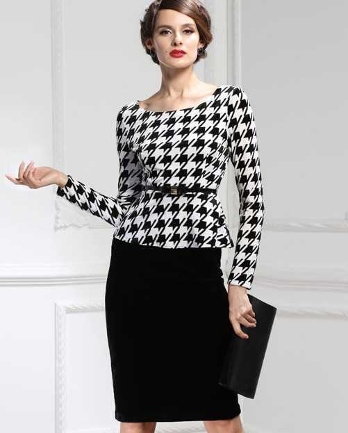 永不过时的千鸟格套头连衣裙,修身拼接的款式,凸显出婀娜多姿身姿,穿出贵气名媛范儿,是2014年最流行的通勤时尚装扮。