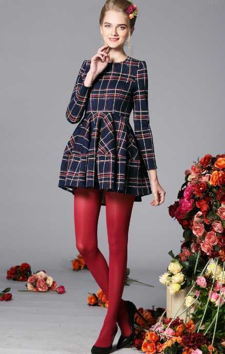 英伦范修身格子冬季连衣裙