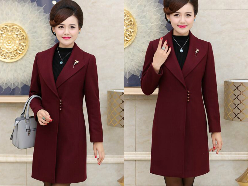看起来很显优雅的一件中长款呢子外套,高贵的酒红色衬托得人气色很好的样子,翻领展现出女士时尚干练的一面,门襟的盘扣设计很别致,H版型直筒修身,告别臃肿身材,适合各种身形的女士。