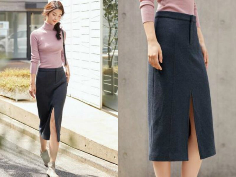 这款高腰A字型的羊毛半身长裙,流畅的线条,简洁大方,个性而不张扬,裙摆前面大开叉的裁剪,让腿部线条更迷人,彰显优雅气质,适合办公室出勤时穿。
