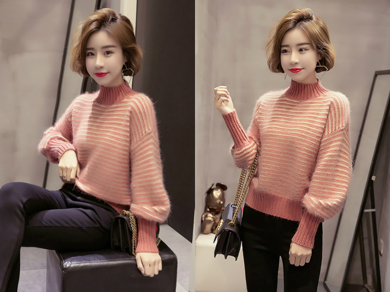 这款毛衣是可以令条纹控们疯狂的单品,细小的条纹非常的显瘦,也很有质感,宽松的版型,百搭的粉色,休闲随意又带点甜美的味道,收紧的领口和袖口把你拥进温暖的怀抱。