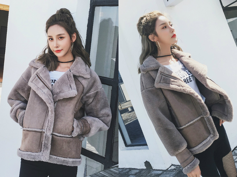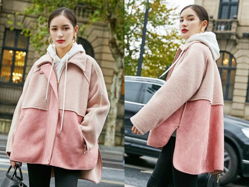 粉嫩的颜色减龄,欧美范小翻领,衣摆前短后长的设计,隐藏式的口袋,简洁大方的拉链设计,无不彰显着时尚,麂皮绒本身就可以挡风,再加上羊羔毛更是暖暖的,宽松版型包容性强,什么身材的女孩都可以轻松驾驭,而且还有一种高贵的感觉。