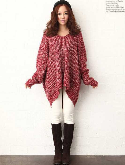 韩国混色针织套头毛衣有着个性的蝙蝠袖和时尚的不规则下摆,简简单单就穿出了时尚与韩味。