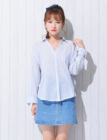 【日系女装上衣款01】这款看似简单的全棉衬衣,采用了V领的设计透露出了女生若隐若现的性感味道,竖条的衬衣还能显瘦。下摆还能随意的打结,增添更加甜美的日系风格,无论搭配短裤长裤还是半身裙都十分地好看喔!
