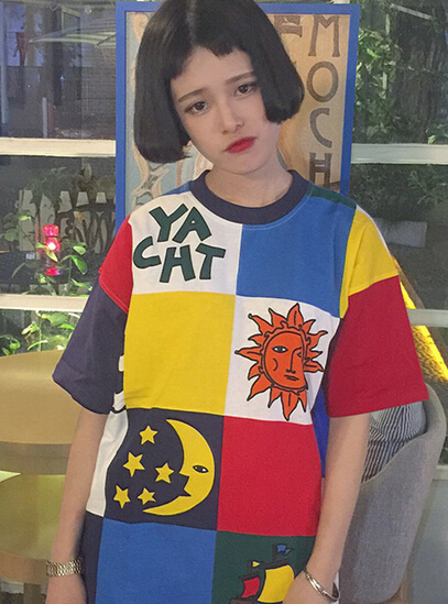日系T桖款03》》》》》太阳星星月亮印花的撞色T桖超级有范,上身的效果舒适又能展现出非同一般的个性,纯棉的衣服材质搭配着独特的印花技术及色彩碰撞,极具日系街头的潮流大牌感,非常地独特。