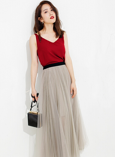 【韩版长裙款02】超有气质的韩版半身长裙以薄网纱的材质制作而成,松紧带的设计适合任何身形的女生,仙气十足的灰色网纱半身长裙简约又大方,一举一动都能散发妩媚的女性气质,而且还相当的百搭唷!