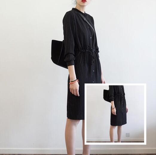 这是充满了时尚摩登范收腰衬衫裙,竖条纹的设计,能凸显纤细苗条身材,穿惯了花色的图案,换换新风格,也能穿出与众不同的时尚风格,可以扣起来当连衣裙,也可以敞开作为小风衣。