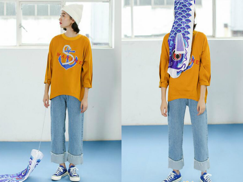 在小编看来牛仔裤承载了青春,总是给人年轻活力感。这款bf风的高腰牛仔裤,裤腿设计成直筒宽松型,不挑腿型不说还能修饰腿型,高腰设计不动声色地隐藏身形的小瑕疵,重塑黄金比例的身材,下摆处选择反面拼接,接缝处还留着小流苏,更凸显个性。