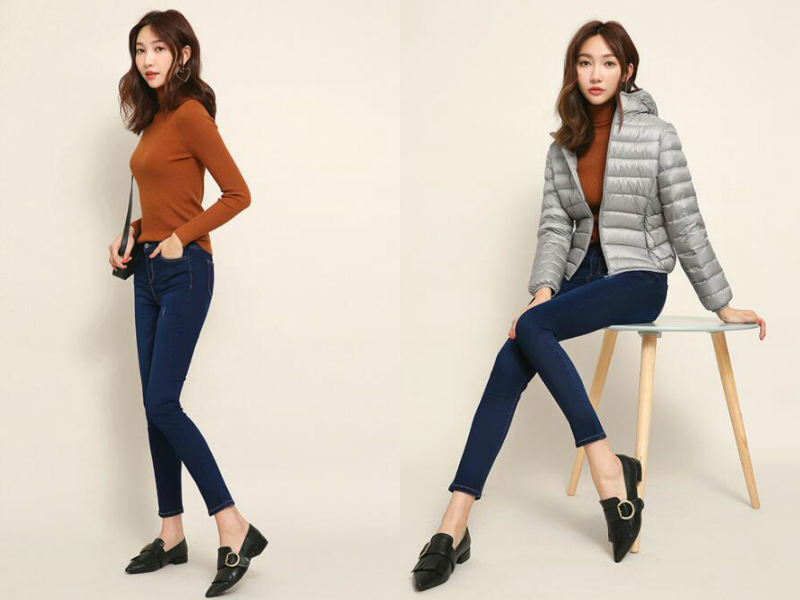 腿型好看的妹子,不妨选择这款紧身牛仔裤哦!版型利落裁剪立体,完美塑造臀部曲线,紧身设计更把修长的腿型展露,微弹的牛仔面料包容性大,加上深蓝色显瘦,更为你打造纤长细腿,简单搭配一件高领针织衫也可以很优雅了。