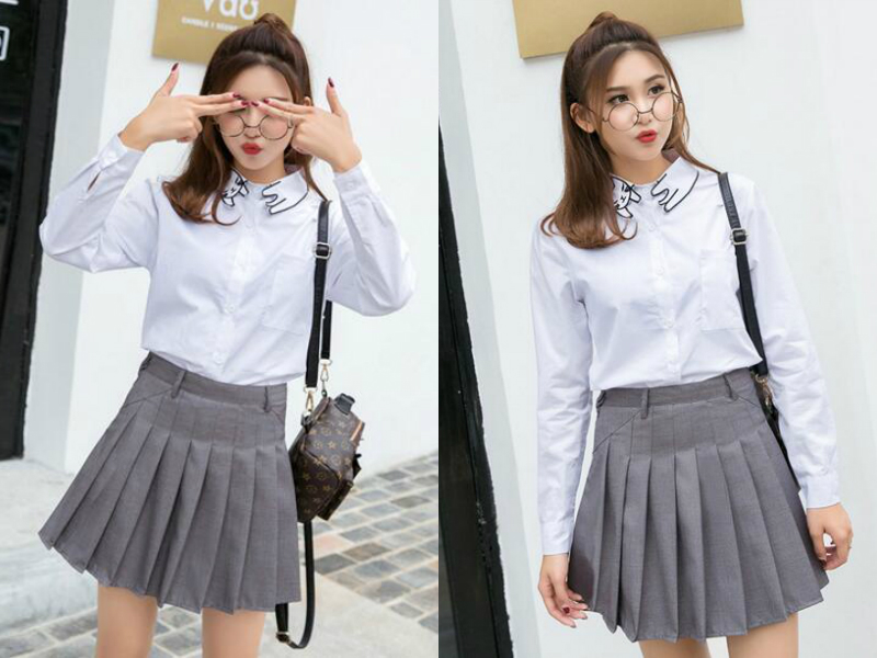 穿上就很减龄活泼的短款百褶裙,有种重回18岁的感觉,轻松就穿出了休闲的学院风味道,立体剪裁修饰版型,穿起来很有青春时尚的味道,演绎出小清新的美好感觉。
